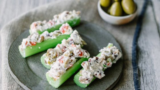 Cream Cheese, Olive, & Nut Stuffed Celery Recipe